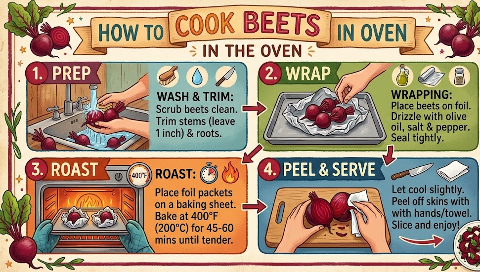 Roasting beets in the oven is one of the most popular and flavorful ways to cook them. Oven roasting enhances the natural sweetness of beets and creates a soft, tender texture with slightly caramelized edges. This method is ideal for salads, side dishes, and roasted vegetable bowls.