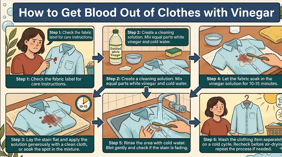 Vinegar works by breaking down the proteins in the blood, making it easier to remove. It is also safe for most fabrics, making it a popular choice for household stain removal.