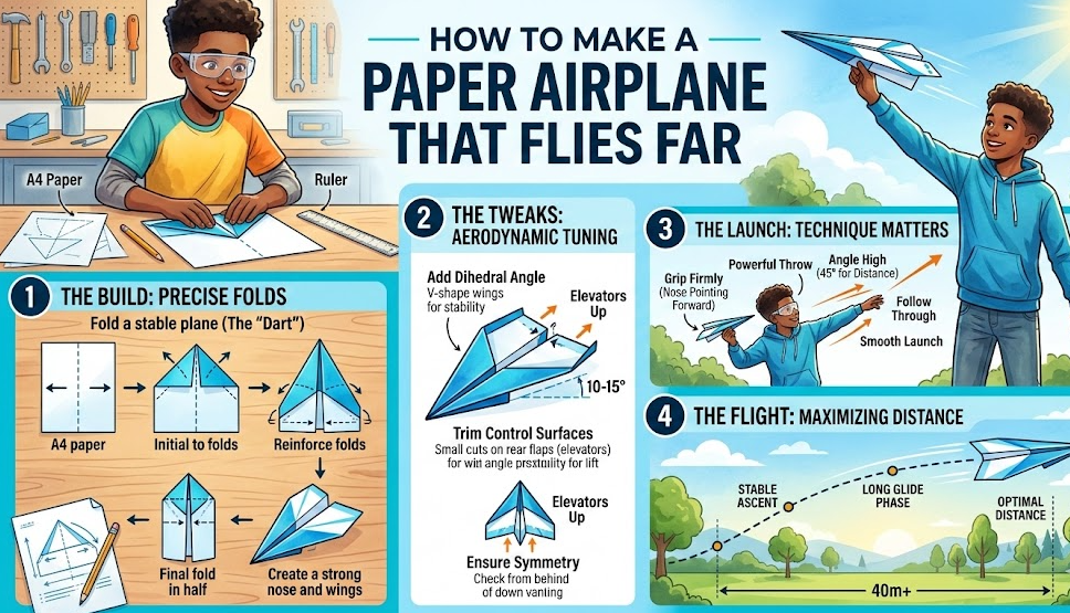 This comprehensive guide explains how to make a paper airplane step by step, including easy beginner models, long-distance designs, jet-style airplanes, and gliders. You will also learn practical tips that improve flight performance and help your paper airplanes travel farther.