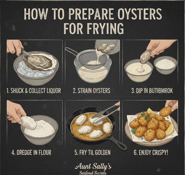 . Prepare the Coating: Use seasoned flour, cornmeal, or breadcrumbs. Add spices like paprika, cayenne, or garlic powder for flavor. The coating forms a protective layer, preserving the tender oyster inside.